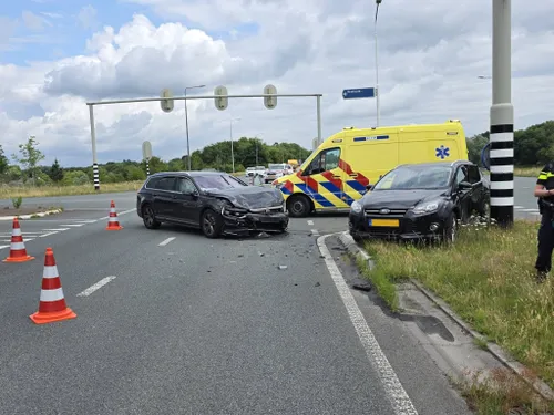 Heelsum - Op de N225 ter hoogte van de Heidesteinlaan in Heelsum zijn maandagmiddag twee voertuigen zwaar beschadigd geraakt na een aanrijding op het kruispunt. Vermoedelijk is een van de voertuigen door rood licht gereden.