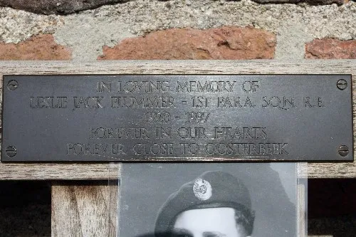 De bankjes zijn geschonken aan Oosterbeek. Door veteranen en door familie van militairen die hier hebben gevochten. Dat geldt tenminste voor het bankje waar een herdenkingsplaat voorLeslie Jack Plummerop zat (zie foto boven).