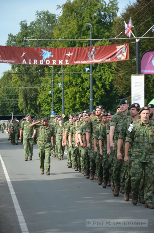 Oosterbeek - De 77e Airborne Wandeltocht was weer een bijzondere. Heerlijk weer, 8 veteranen , 33.888 wandelaars en ca 350 vrijwilligers maakten het weer fantastisch.