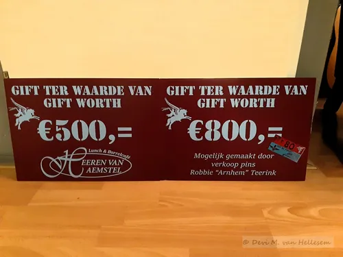 Maar liefst 800 euro's van de opbrengst van de pins die Robbie inmiddels al een paar jaar verkoopt voor de stichting. En, als verassing want de dames wisten hier niets van, kwam er nog eens 500 euro bij van Paul van Heeren van Aemstel in Arnhem.