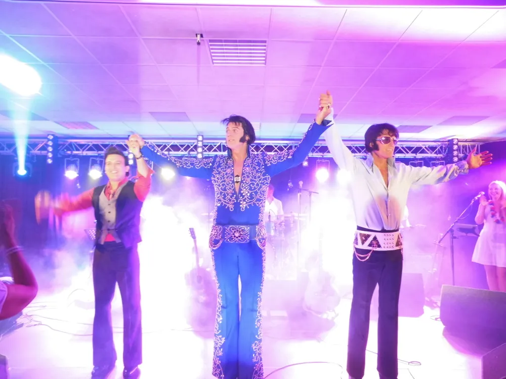 Ze zongen bekende en minder bekende nummer van Presley en alle drie leken ze beslist op Elvis. Niet alleen met hun kleding en haardracht, ze hebben allemaal iets van Elvis weg en hun stemmen klonken, hoewel toch allemaal net een beetje anders, onmiskenbaar als De King. Met regelmaat kwam er iemand het publiek uit lopen om hen een oranje of rood/wit/blauwe Hawaiiaanse bloemenkrans om te hangen. Die werden dankbaar in ontvangst genomen maar toch snel aan de kant gelegd omdat het onder de lampen erg warm was.
