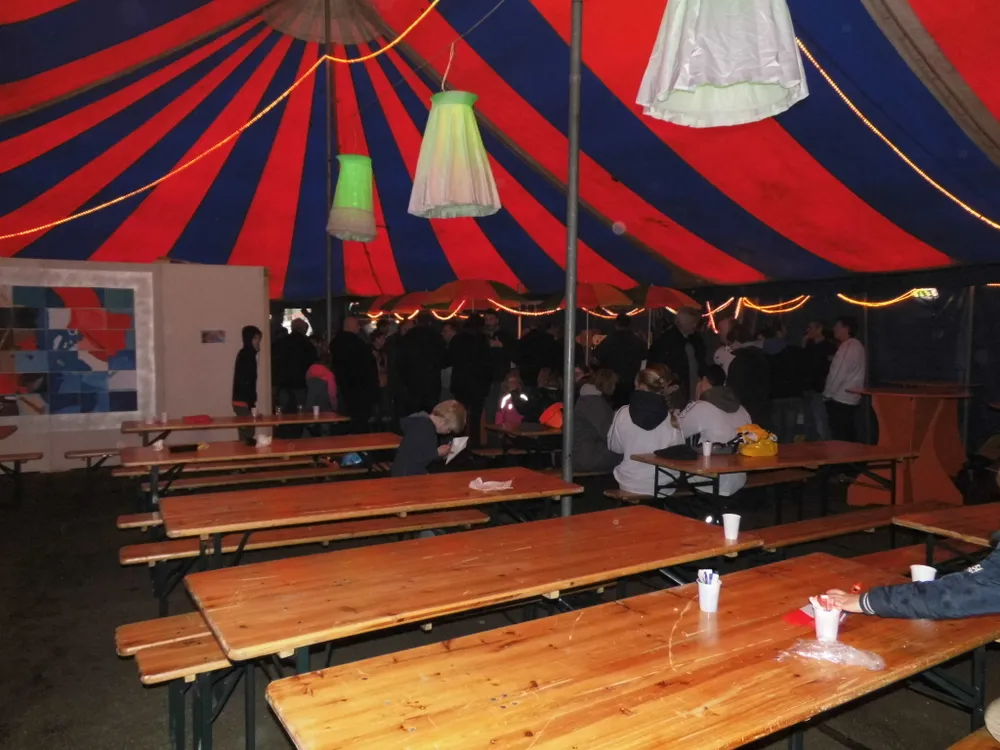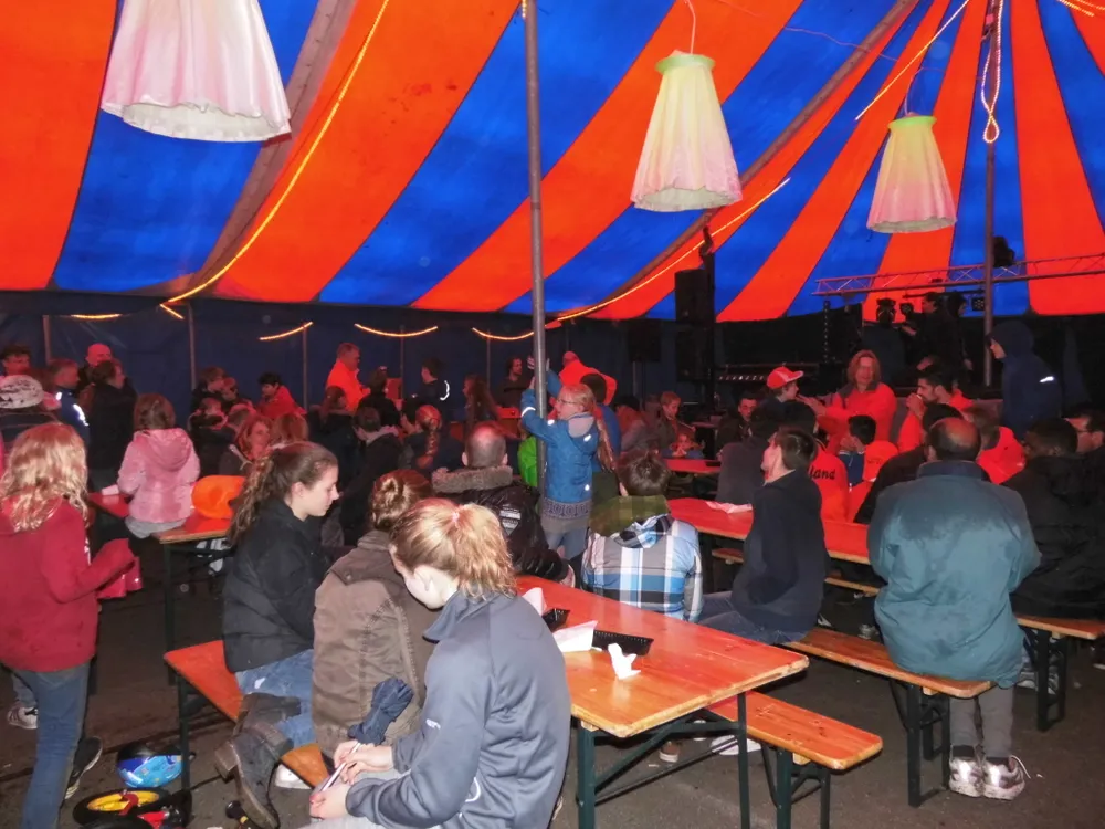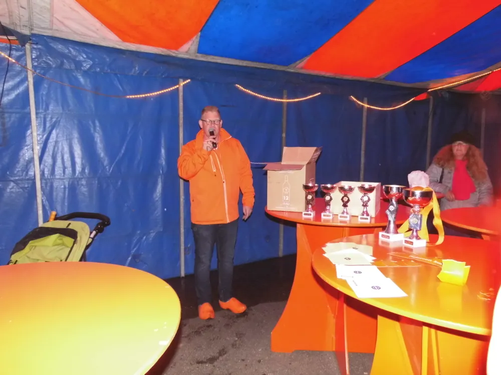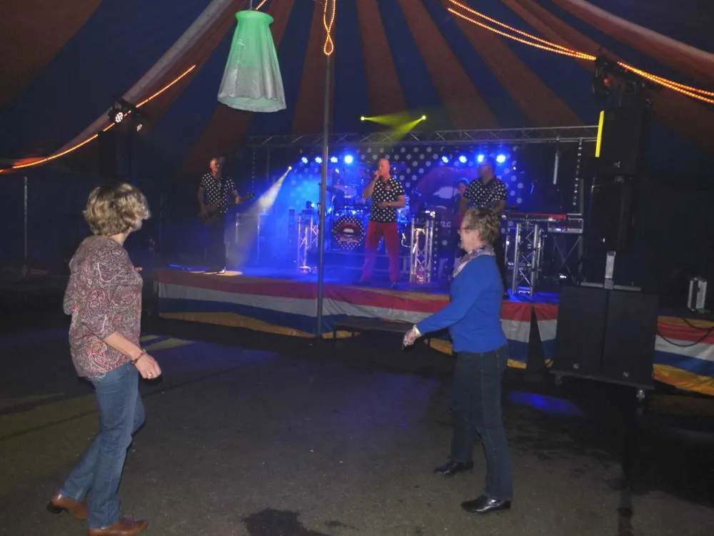In Wolfheze staat ieder jaar een grote circustent dus plan B was hier niet nodig. Bij hevige buien kon iedereen goed schuilen in de gezellige, verwarmde tent. Buiten was het tafelvoetbalspel een groot succes, er werd fanatiek gespeeld en nog meer gelachen. Oranjevereniging Wolfheze had als enige vereniging ook 's avonds een feest gepland. Daar was het niet heel druk, het was tenslotte een door-de-weekse dag. De Band Blind Date maakte er in ieder geval een vrolijke boel van en de dansende inwoners hadden zo wel plek genoeg op de vloer. Een mooie afsluiting van een geslaagde dag. Ook bij hen kun je op de Facebookpaginade foto's bekijken.
