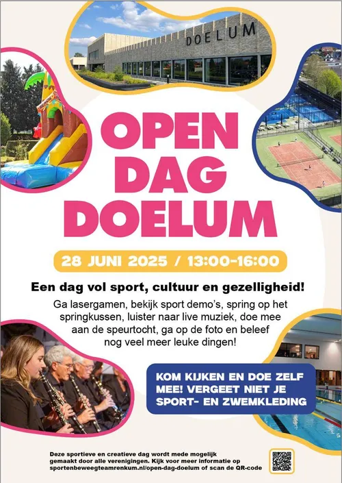 Renkum– Op zaterdag 28 juni 2025 zetten de verenigingen van MFC Doelum gezamenlijk de deuren open voor een feestelijke en actieve Open Dag. Tussen 13:00 en 16:00 uur is iedereen van harte welkom om kennis te maken met het veelzijdige aanbod binnen Doelum.