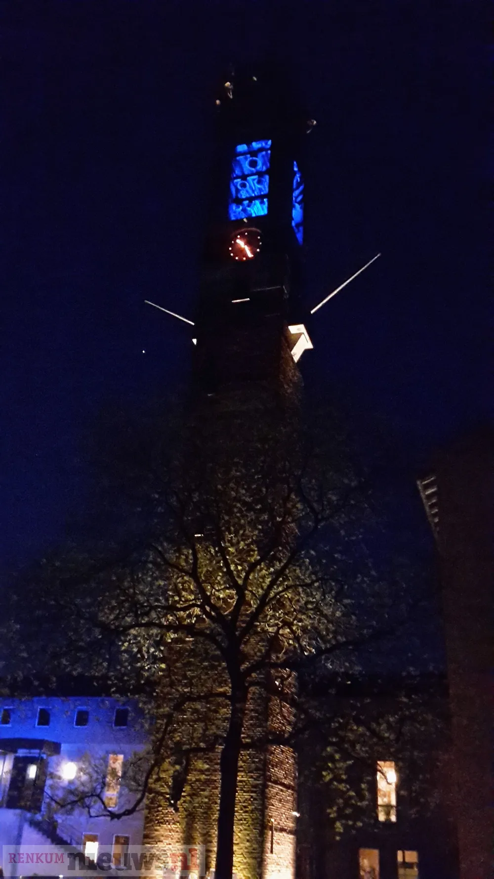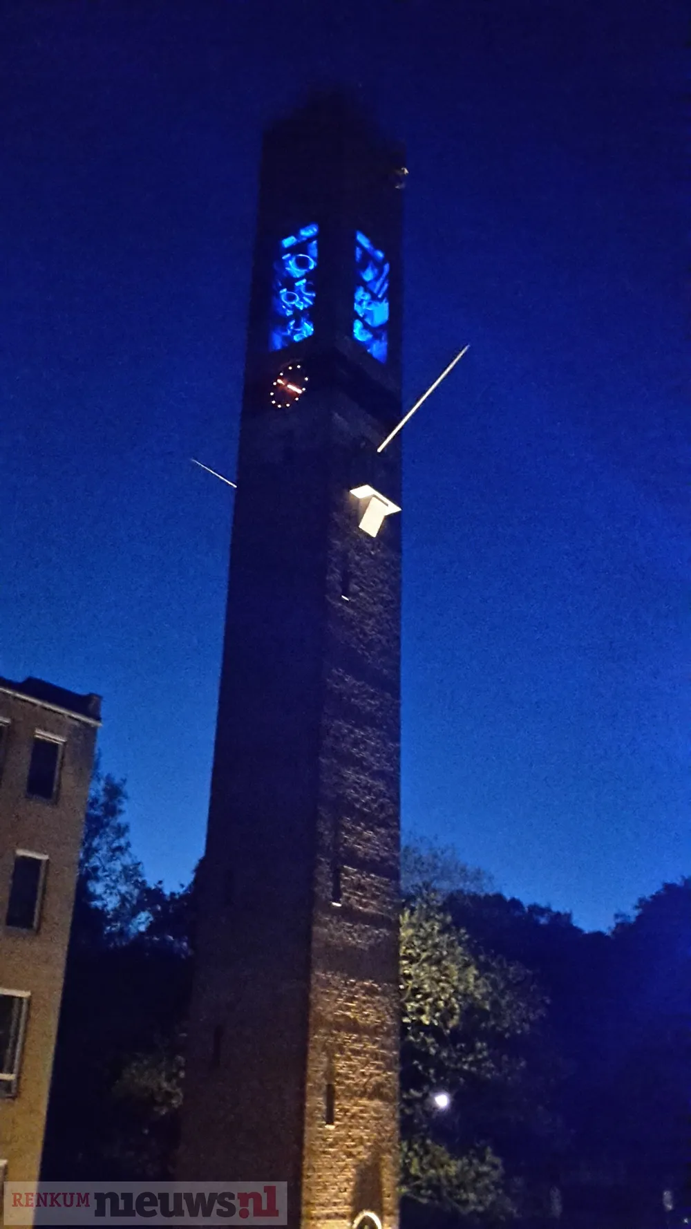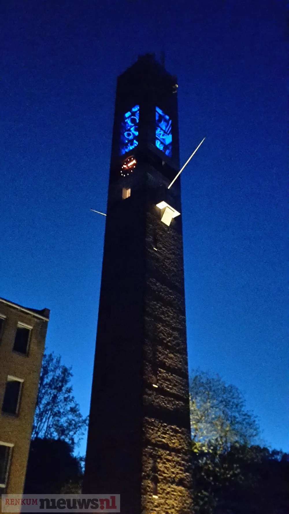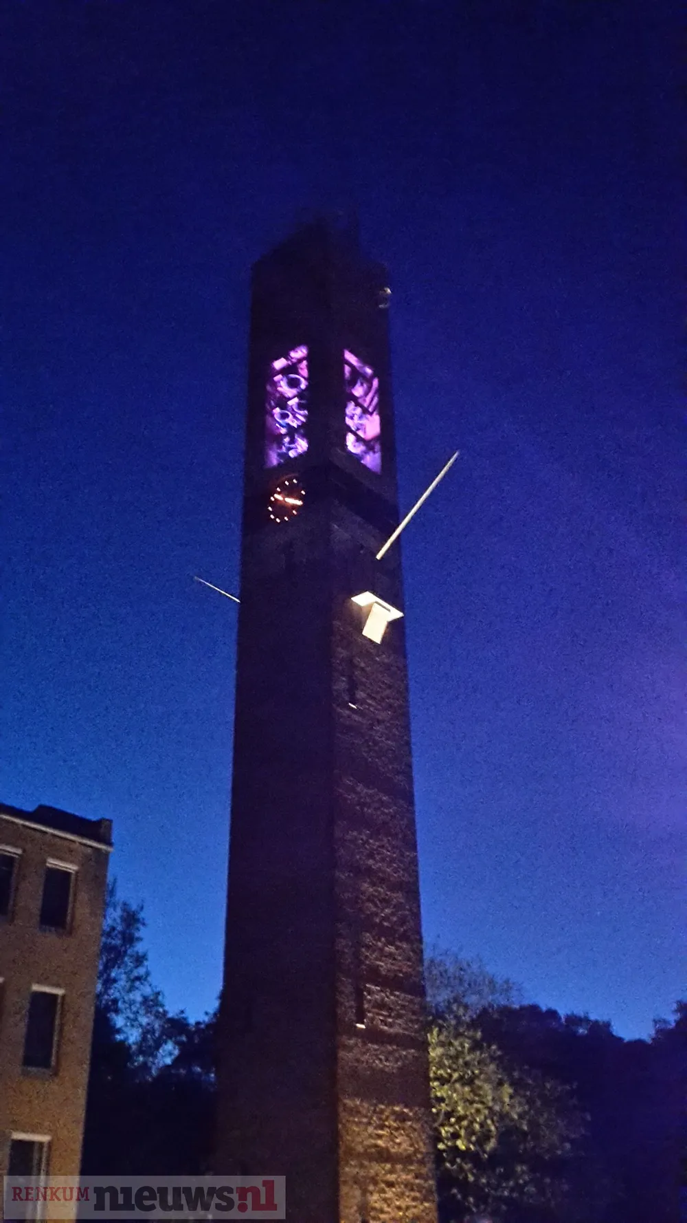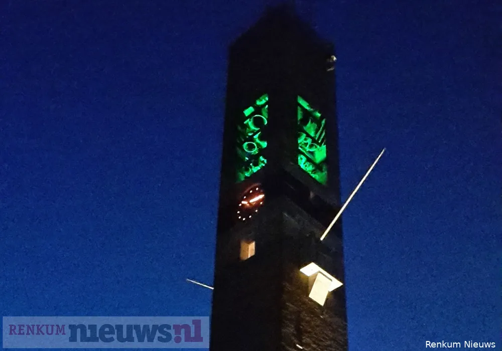 Eén van de gewenste kleuren is oranje, bij uitstek geschikt voor Koningsdag natuurlijk. Maar dat wil helaas niet lukken. Ook geel lukt niet. Dat heeft alles te maken met de binnenkant van de toren. Het wit/gele metselwerk kaatst het licht wit naar buiten zodra geel of oranje ingesteld staat, jammer.