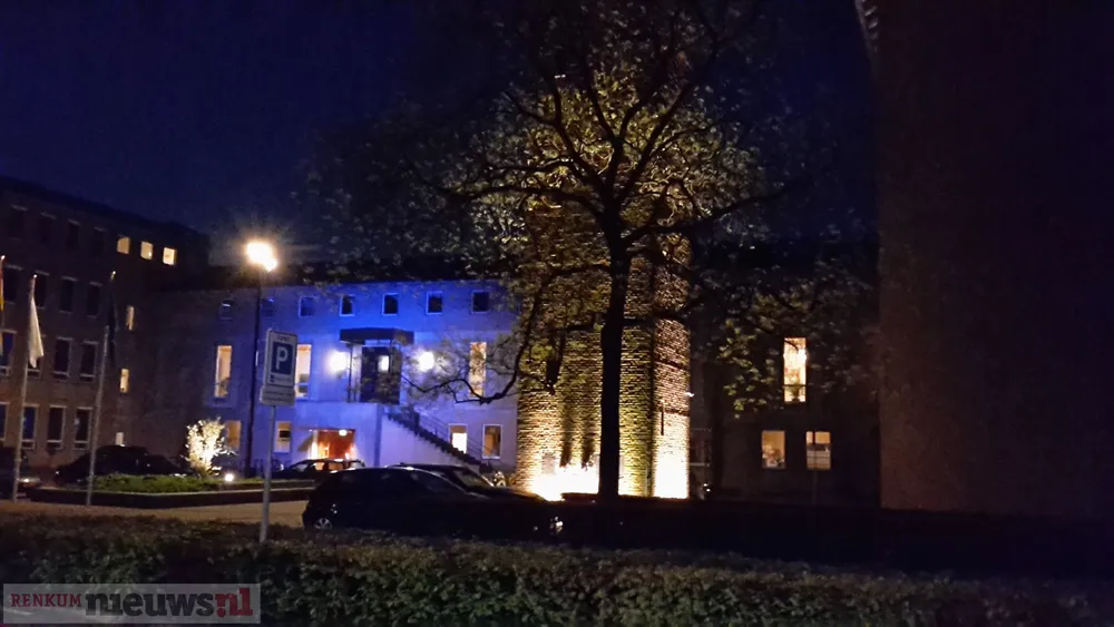 Woensdagavond was er wat extra bedrijvigheid bij het gemeentehuis in Oosterbeek. De nieuwe LED-verlichting die de raadhuistoren en de ingang voortaan gaat verlichten werd getest.