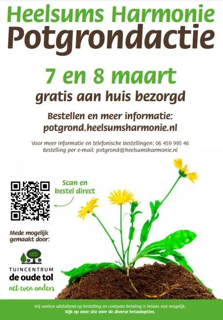 Op vrijdag 7 maart en zaterdag 8 maart organiseert Heelsums Harmonie haar jaarlijkse potgrondactie.