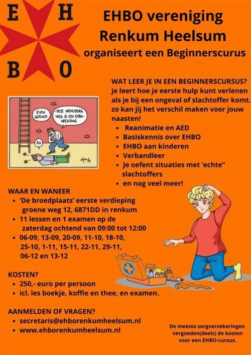 Meld je aan dan aan voor de beginnerscursus EHBO van de EHBO Renkum-Heelsum.